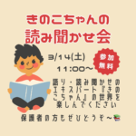 - 3/14(土)11:00~きのこちゃんの読み聞かせ会 開催予定🍄