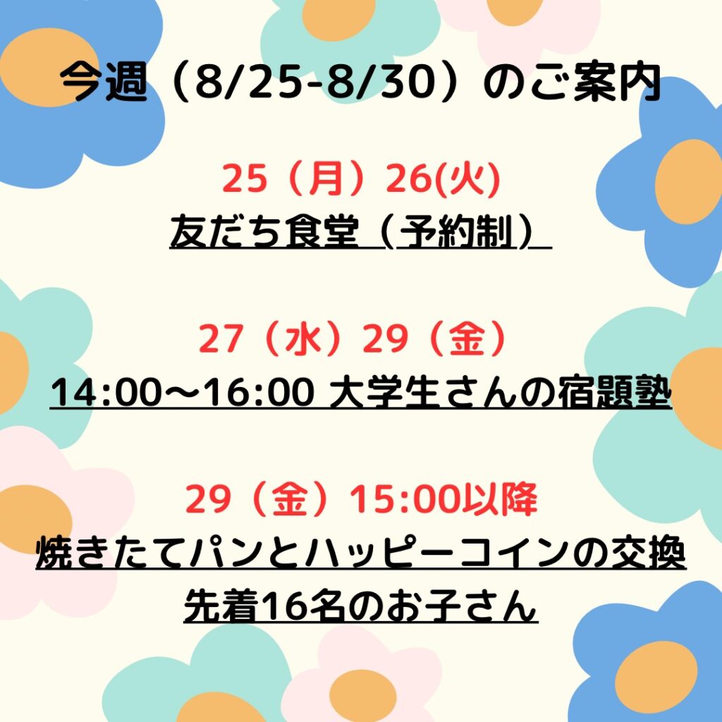 8/25~8/30の案内