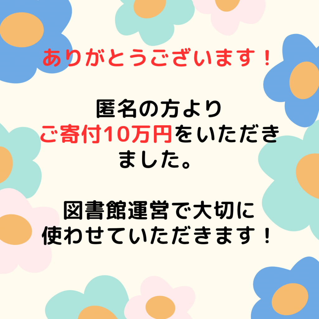 お名前はわからないのですが、匿名でのご寄付を10万円いただきました。