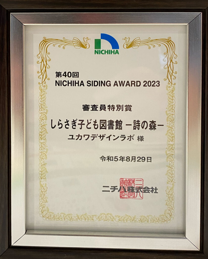 優れた建築物を選定する「NICHIHA SIDING AWARD 2023」で、ユカワデザインラボが、「しらさぎ子ども図書館」を対象に「審査員特別賞」を受賞いたしました。